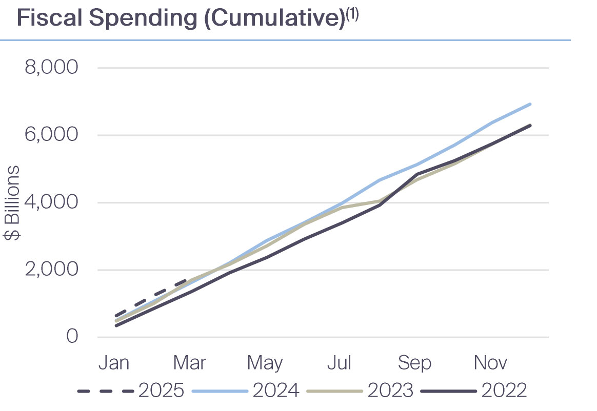 Why It Is Important: This is the cumulative government spending each year. The magnitude of fiscal spending was a key factor in preventing a recession in 2022. Fiscal spending has continued at the pace of recent years. Will this trend continue in 2025?